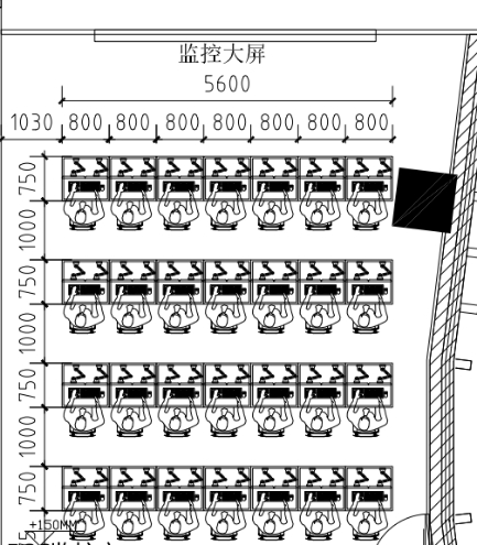 操作台4排,每排7个工位,操作台需满足每个工位配置2台电脑(包含两台显示器)