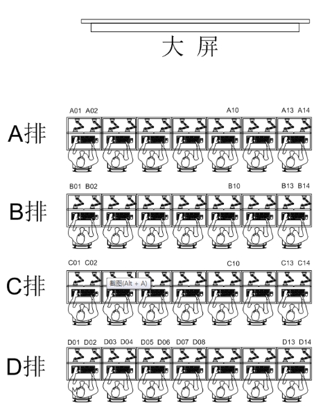 (6)每个操作工位都配备一根投屏线缆至大屏控制器。
