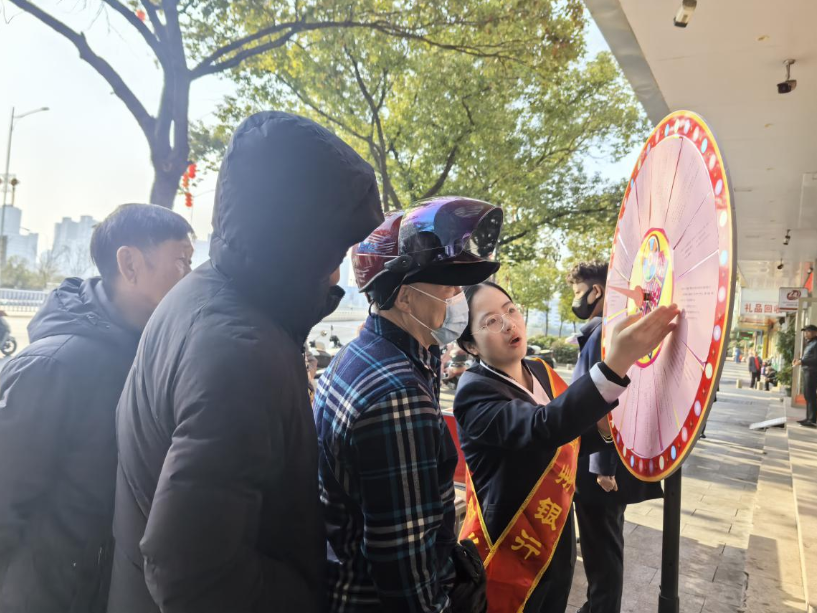 在普及金融知识的同时,活动还设置有奖问答环节——通过幸运大转盘,让完成“课堂学习”的群众学习了“警惕非法集资四部曲”“谨慎投资四要点”“防非四看三思等一夜”等重点知识,也领取了赣州银行送达的新春贺礼!