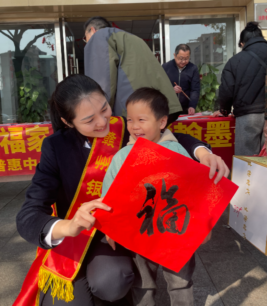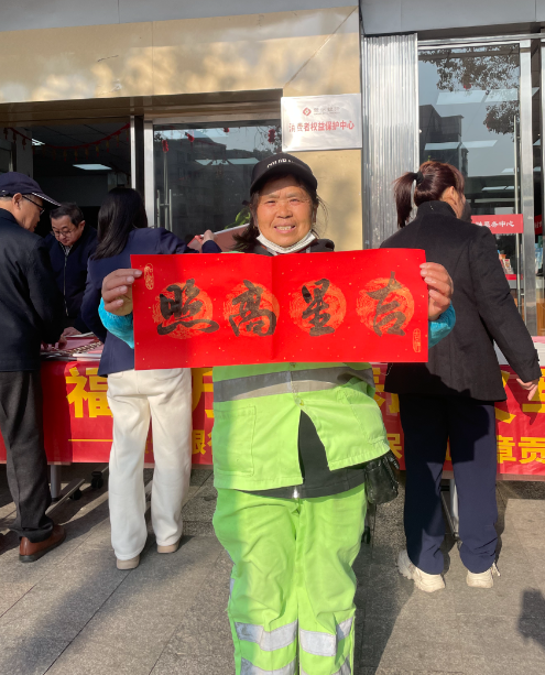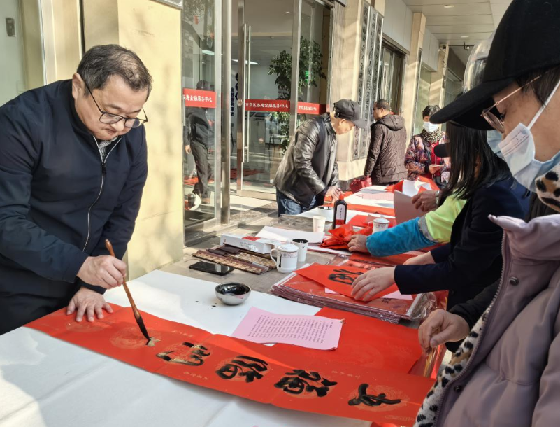 书法墨香四溢,热闹非凡。书法老师展纸挥笔、饱蘸浓墨,为来访群众书写新春祝福。每一笔都蕴含着对新年的美好祈愿,每一划都勾勒出对未来的无限憧憬。一幅幅遒劲有力的春联跃然纸上,引来群众阵阵赞美和感谢!