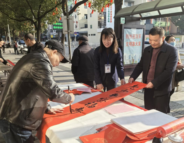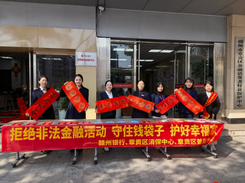1月20日,赣州银行联合章贡区金融消保中心、章贡区普惠金融服务中心举办“翰墨迎春福到万家”春联赠送暨“拒绝非法金融活动守好钱袋子护好幸福家”公益宣传活动,将新春祝福与防范非法金融活动知识送到千家万户。