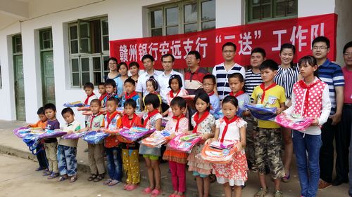 5月30日,我行安远支行职工代表来到龙布镇五丰村小学开展第一次帮扶活动,支行领导及职工代表一同前往龙布镇五丰村小学看望留守儿童,并为孩子们带去了“六一”儿童节的问候,同时向孩子们捐赠了价值2000元的书包及文具用品。