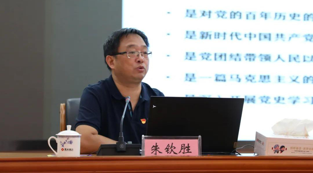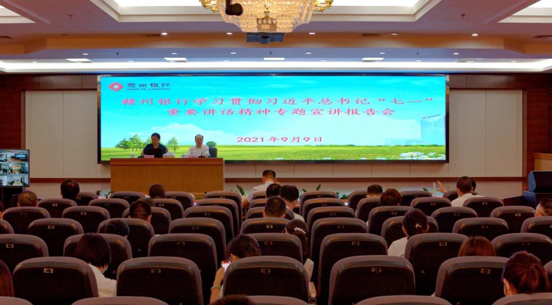 按照市委党史学习教育统一部署,9月9日下午,党史学习教育市委宣讲团学习贯彻习近平总书记“七一”重要讲话精神专题宣讲报告会在赣州银行裙楼五楼大会议室举行。市委宣讲团成员、赣南师范大学中国共产党革命精神与文化资源研究中心常务副主任、教授朱钦胜作题为《奋斗百年路 起航新征程》的宣讲报告。