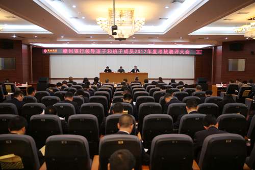 1月23日,赣州银行领导班子及班子成员2017年度综合考评民主测评大会在总行裙楼5楼会议室召开。市委第十考核组组长、市委巡查组组长黄隆聚,考核组副组长、市国资委副主任、党委委员黄晓东出席会议。总行党委书记、董事长谢京华主持会议。总行领导、考核组成员、各分支行主要负责人、机关各部室中层干部及部分员工代表参加了会议。