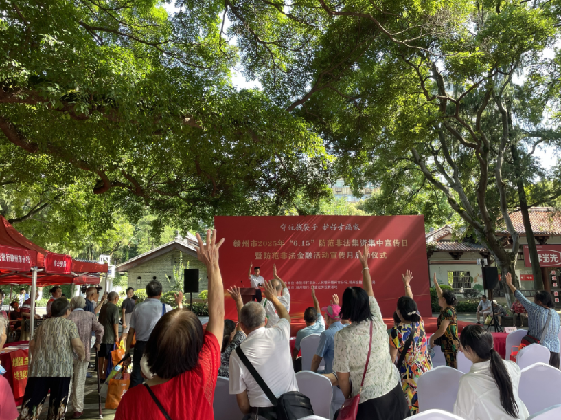 由赣州银行承办的赣州市“6·15”防范非法集资集中宣传日暨防范非法金融活动宣传月启动仪式在赣州公园顺利开展。活动现场气氛热烈,各金融机构宣教人员聚焦“养老服务骗局”“高额回报理财骗局”等非法集资的典型特征、严重危害、识别和防范技巧,通过“以案说法”“风险警示”“有奖问答”等方式向群众开展防非精准宣传。现场群众参与学习互动的积极性高涨,为全市防范非法金融活动宣传月奏响了最强音。