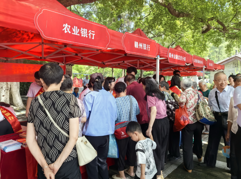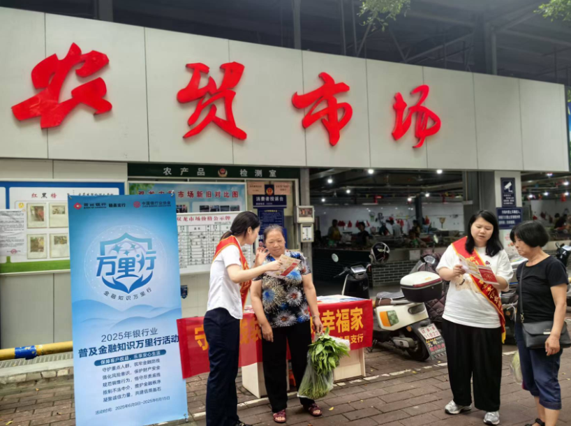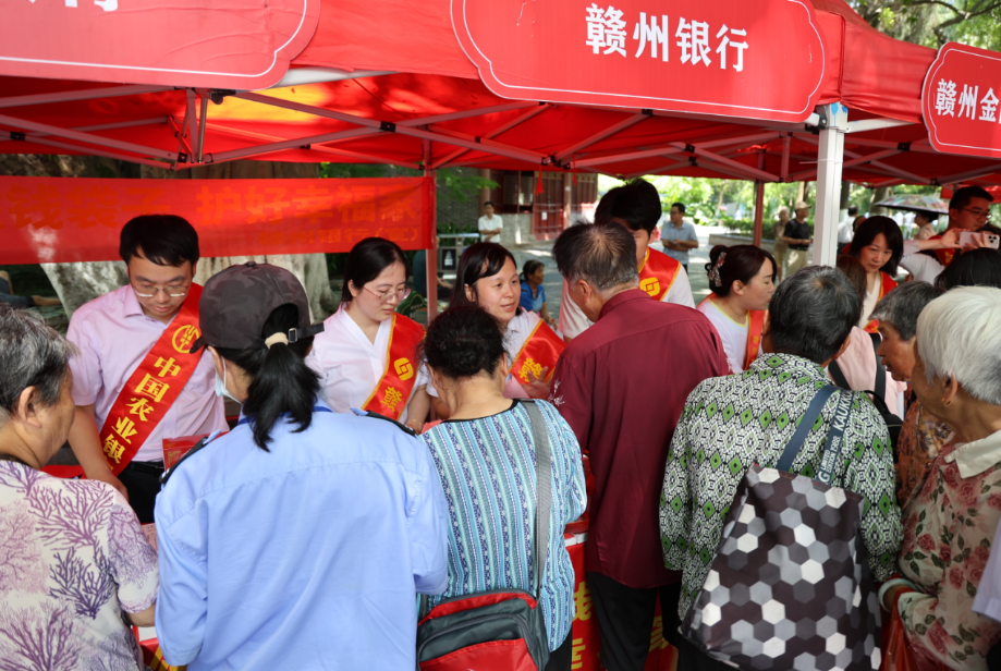 赣江支行、赣县支行分别走进贸易广场、双龙菜场,搭设宣传台,摆放宣传折页。工作人员身披绶带,穿梭于摊位间,向摊主和买菜的市民发放防非手册,用最接地气的语言,讲解识别和防范非法集资的要点,强调“天上不会掉馅饼”、“投资理财要认准正规机构”,有效提升了中老年群体和个体工商户的自我保护意识和能力。