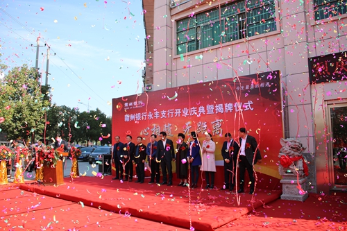 11月30日,赣州银行永丰支行隆重开业。永丰县委常委、常务副县长杜滨,赣州银行党委委员、副行长梅小娜出席开业仪式并为永丰支行揭牌。