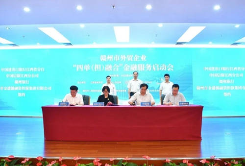 活动中,中国进出口银行江西省分行、中国信保江西分公司、赣州银行、赣州市金盛源融资担保集团有限公司分别签约。同时,江西金力永磁科技有限公司、赣州市卫诚火机制造有限公司成为首批签约企业。