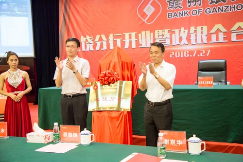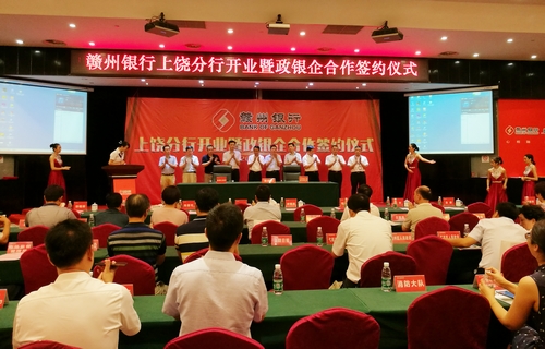 仪式上,上饶市委副书记、市长颜赣辉和我行党委书记、董事长谢京华共同为上饶分行开业揭牌;上饶市委常委、副市长廖其志和我行党委书记、董事长谢京华先后致辞。