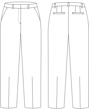 夏裤:前无褶裤,后单省,宝剑头裤腰,裤腰6根串带,内置松紧腰,前斜插袋,后双开线袋,防滑腰里,裤脚防踩条,挺缝工艺。