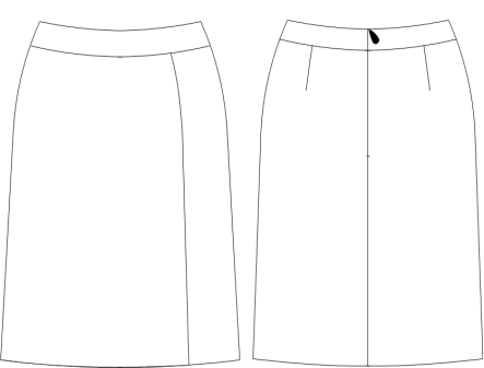 夏裙:女弧形腰,前无褶,左侧顺风褶,后单省,小A裙,后中隐形拉链。