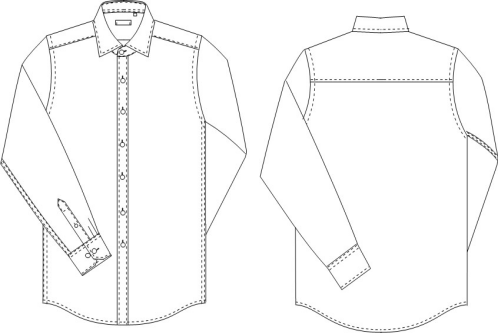 男长袖衬衫款式说明:男小方领长袖衬衫,内插片,外翻门、里襟,七扣,圆下摆,六角袖克夫,宝剑头袖衩。成衣免烫、接缝处抗皱防缩工艺。领口袖口耐磨防污处理。详见下图: