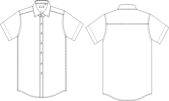 男短袖衬衫款式说明:男小方领短袖衬衫,内插片,外翻门、里襟,七扣,圆下摆,短袖普通袖口。成衣免烫、接缝处抗皱防缩工艺。领口耐磨防污处理。详见下图: