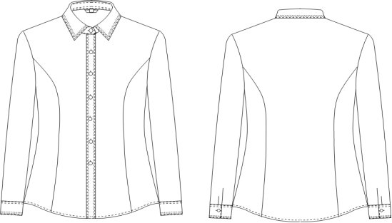 女长袖衬衫款式说明:女小方领型长袖衬衫,外翻门襟、七扣,圆摆,前后公主线收腰,直角袖克夫一粒扣,袖口一个褶。领子、门襟、袖口绣花装饰,胸口有两粒防走光暗扣,成衣免烫工艺,成衣抗皱处理、领口袖口耐磨防污处理。详见下图: