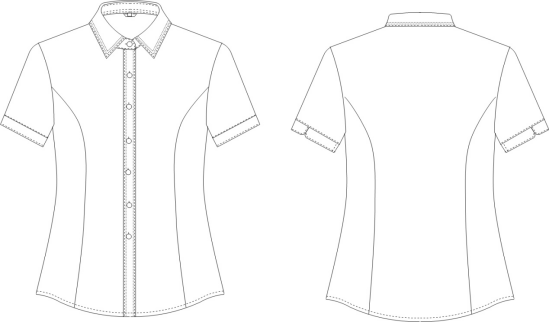 女短袖衬衫款式说明:女小方领型短袖衬衫,外翻门襟、七扣,圆摆,前后公主线收腰,袖口边圆弧形开衩。领子、门襟绣花装饰,胸口有两粒防走光暗扣,成衣免烫工艺,成衣抗皱处理、领口耐磨防污处理。详见下图: