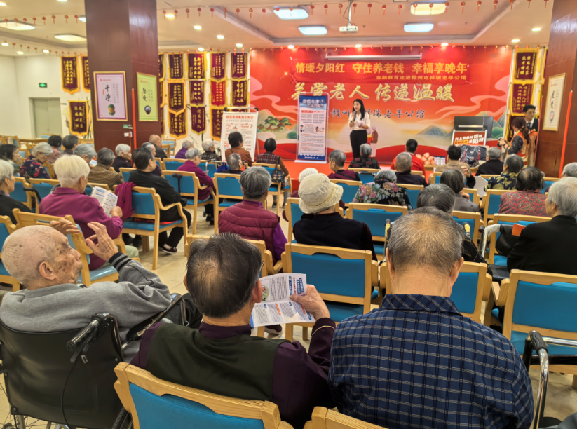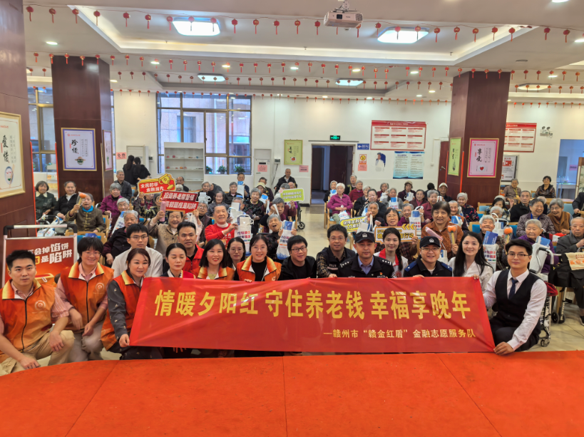 重阳敬老,金融护航。10月29日下午,在重阳佳节之际,由赣州银行消保中心、赣州银行总行营业部组成的赣州银行金融志愿服务队,联合赣州金融监管分局、市民政局、市防非打非办、市公安局及章贡区金融服务中心,共同走进赣州市祥瑞老年公馆,开展以“情暖夕阳红守住养老钱幸福享晚年”为主题的金融教育宣传活动,为老年朋友送上了一份实用的“金融安全礼”。